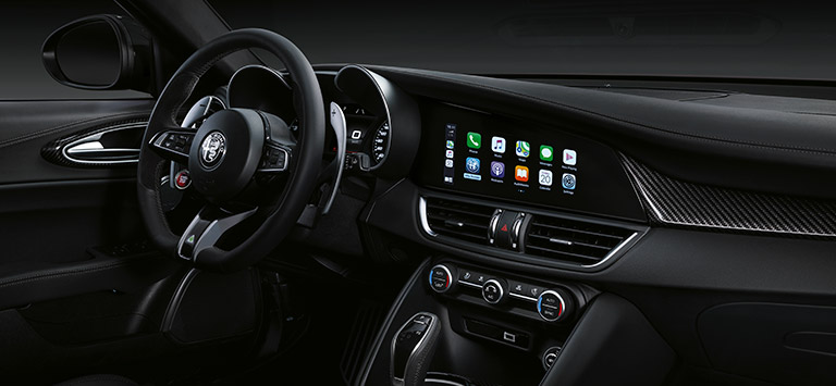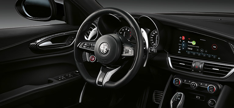 Quelques gestes simples, intuitifs et immédiats, le plaisir de conduire Giulia Quadrifoglio n’est jamais interrompu. Le nouveau système d’infodivertissement est entièrement repensé et enrichi d’un écran tactile 8,8’’ exclusif.