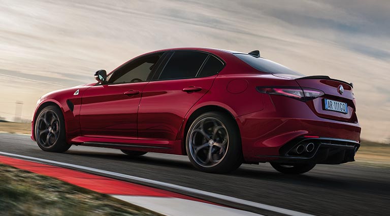 Consommation de carburant Giulia Quadrifoglio (l/100 km) : 10,3 - 10,1; émissions de CO₂ (g/km): 233 - 228.