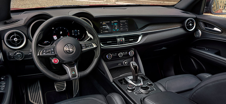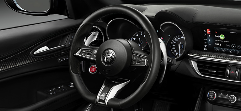 Stelvio Quadrifoglio réunit design, performance et innovation grâce à une série de technologies brevetées et à l’utilisation de matériaux légers pour offrir des sensations de conduites incomparables.